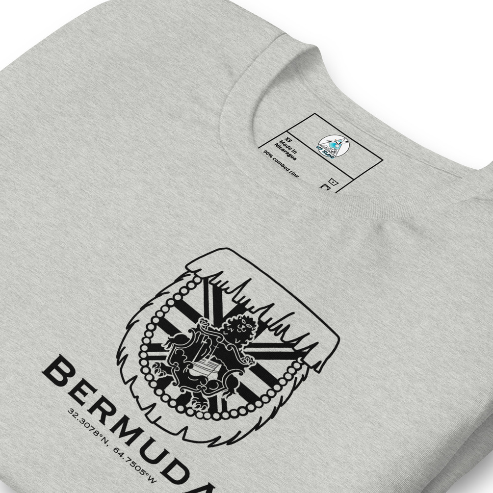To further celebrate the unique characteristics of the island, the word "Bermuda" is elegantly displayed below the design, along with the coordinates of the island – a nod to its geographical significance.